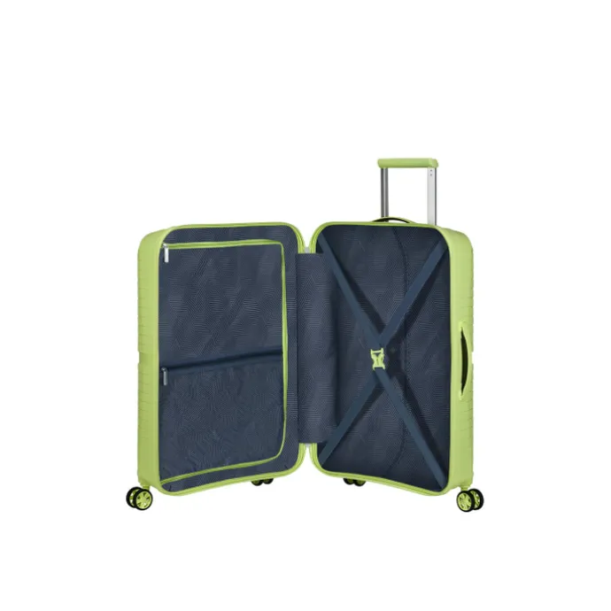 Een stijlvol design is gecombineerd met een praktische indeling en het gebruik van zeer licht polypropyleen in de producten uit de Airconic collectie van American Tourister. De koffers zijn voorzien van een meertrapse trekstang en vier roterende wielen waardoor ze comfortabel in gebruik zijn. De Airconic Spinner 67 springt in het oog dankzij het gebruik van dynamische lijnen op de voorzijde die zorgen voor een moderne uitstraling. Daarnaast is de koffer prettig in gebruik dankzij een ruim hoofdcompartiment met interne opbergmogelijkheden zoals gekruisde pakriemen en twee ritsvakken. Een TSA-cijferslot zorgt ervoor dat bagage in het hoofdvak veilig is opgeborgen. Ga comfortabel en stijlvol op reis met de Spinner 67 uit de Airconic collectie van American Tourister!