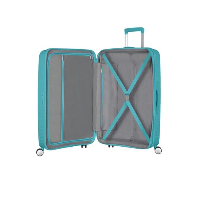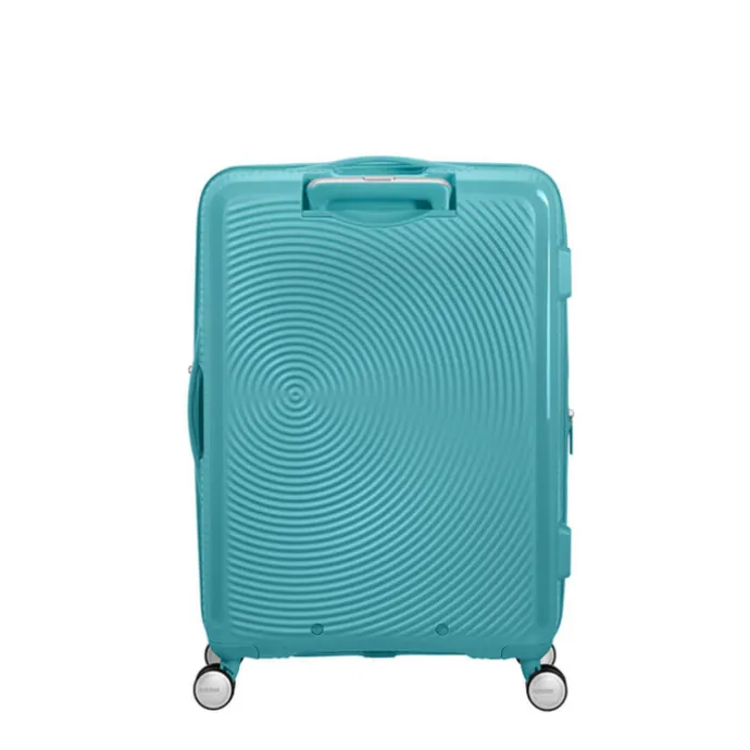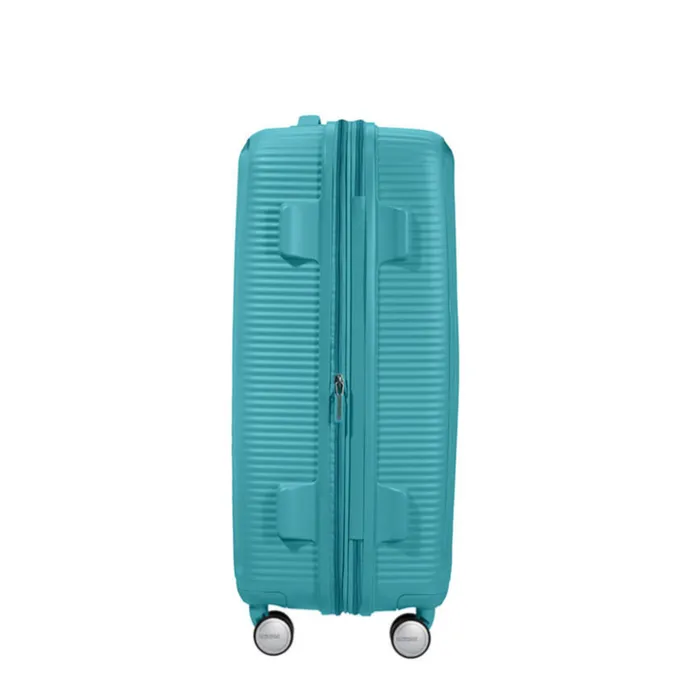 De American Tourister Soundbox Spinner 67 Expandable is fantastisch. Deze middenmaatkoffer ziet er stijlvol uit en dankzij het polypropyleen is de koffer licht en ultrastevig. Bagage is overzichtelijk en gescheiden van elkaar op te bergen dankzij het ruime hoofdcompartiment met gekruiste inpakriemen, een afsluitbaar ritscompartiment en twee ritsvakken. Eigenlijk geen plaats meer voor de gekochte souvenirs? De koffer is door middel van een rits uitbreidbaar tot maar liefst 81 liter inhoud. Dankzij het TSA-cijferslot is de koffer beschermd tegen openbreken en hierdoor kan hij met een gerust hart achtergelaten worden op het vliegveld. De vier dubbele, soepele wielen en dubbele trekstang zorgen voor een maximaal gebruiksgemak.