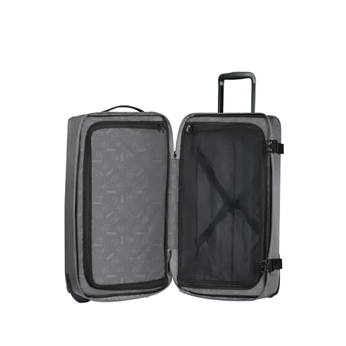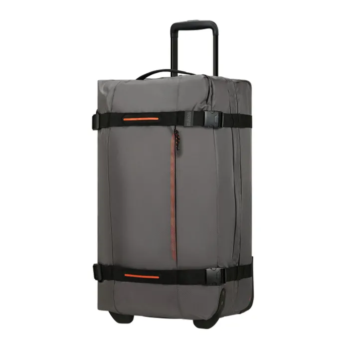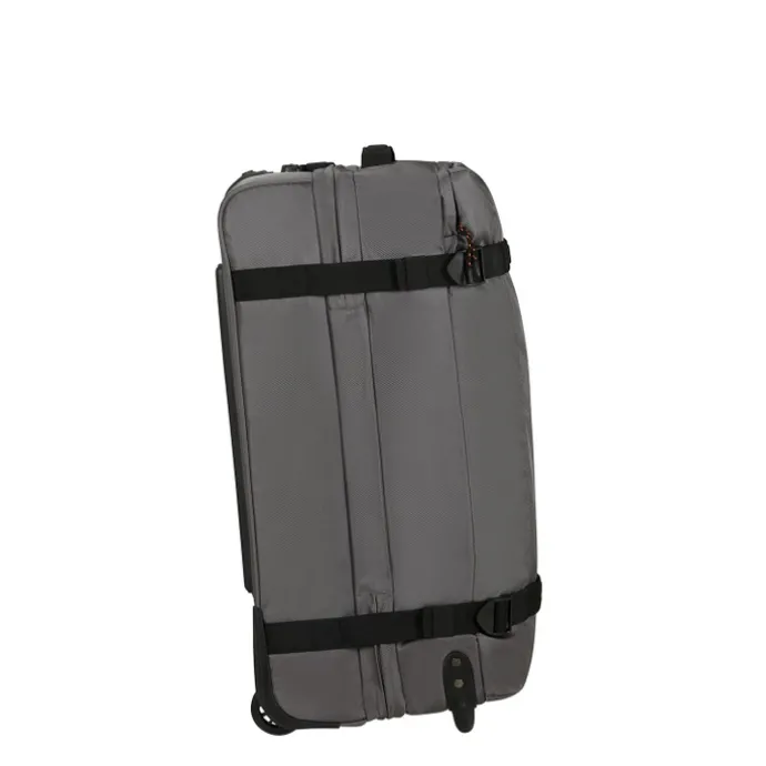 Deze American Tourister Urban Track Duffle/Wheels is jouw ideale metgezel voor reizen van 2-3 weken. Met een grote inhoud van 84 liter biedt deze duffle voldoende ruimte voor al je reisbenodigdheden. Het materiaal van deze duffle is duurzaam rPET-materiaal, dat is gemaakt van gerecyclede plastic flessen. Met het geïntegreerde TSA-slot blijven je waardevolle spullen veilig en beschermd, terwijl de soepel rollende wielen en de uitschuifbare trekstang het vervoeren van de duffle een stuk makkelijker maken. Of je nu een avontuurlijke reiziger bent of gewoon graag goed voorbereid op pad gaat, de American Tourister Urban Track Duffle/Wheels M biedt de ruimte, duurzaamheid en gemak die je nodig hebt voor een comfortabele reis.