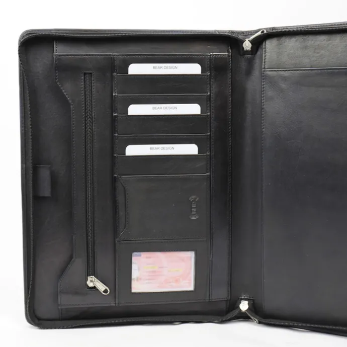 De Bear Design Cow Lavato schrijfmap is een essentiƫle aanvulling voor je kantoor of thuiswerkplek. De map maakt deel uit van de vernieuwende Cow Lavato collectie, die gebruikmaakt van een innovatieve leerbewerkingstechniek. Deze robuuste en stijlvolle schrijfmap biedt ruimte voor al je A4 documenten en laat zich eenvoudig combineren met je outfit.