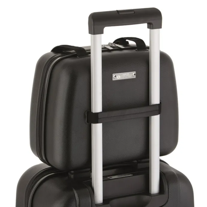 Deze Beautycase is onderdeel van de Skyhopper collectie van CarryOn. De beautycase heeft een een stevige buitenzijde van polycarbonaat. Het interieur is gevoerd en voorzien van een praktische indeling van vakjes. Diverse steek- en ritsvakjes zorgen ervoor dat je je toiletartikelen overzichtelijk kan opbergen. Het hoofdvak sluit middels een soepele rits. De beautycase is in de hand te dragen aan de twee handvatten, maar hij kan ook aan je koffer worden bevestigd met behulp van de smart sleeve op de achterzijde.