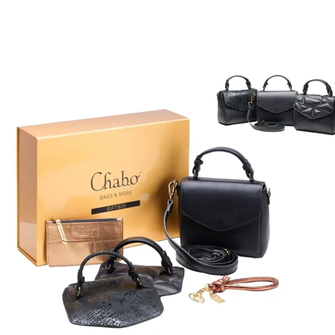 Ben of ken jij iemand die graag van look wisselt, maar het zonde vindt om steeds een nieuwe tas te kopen? Dan is deze giftbox van Chabo dé oplossing! Deze giftbox bevat namelijk niet alleen een etui en een sleutelhouder, maar ook drie tassen in één. Hoe dit precies werkt? De klep van de handtas is verwisselbaar, door middel van een rits. Haal de oude klep er af en vervang deze voor één van de bijgeleverde kleppen en voilà : je tas heeft een compleet ander uiterlijk!