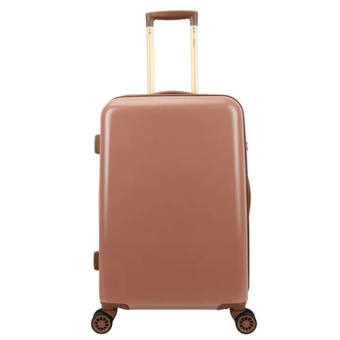 Binnenin biedt het interieur alles wat je nodig hebt: een gevoerde binnenkant, meerdere ritsvakken, een tussenschot met ritssluiting en gekruiste pakriemen om je spullen netjes op hun plek te houden. Je bagage is extra veilig opgeborgen dankzij het ingebouwde TSA-combinatieslot, stijlvol weggewerkt in de bruine afwerking.