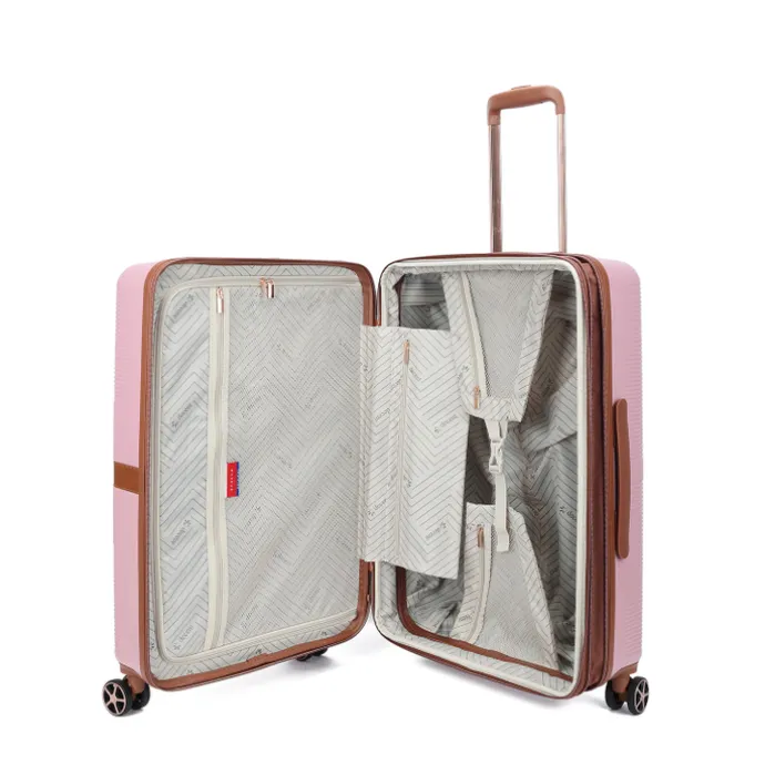 De koffer is gemaakt van stevig, lichtgewicht polypropyleen en biedt alles wat je nodig hebt voor een comfortabele reis: vier soepel draaiende, dubbele wielen, een verstelbare dubbele trekstang en een TSA-slot voor veilig reizen naar onder andere de Verenigde Staten.