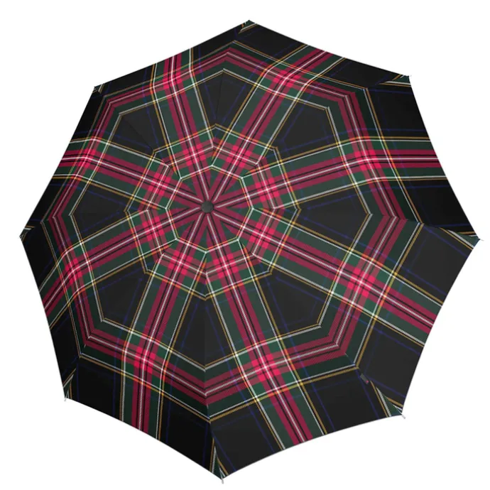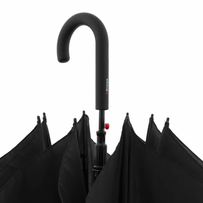 De Knirps A.760 Stick Automatic pinta beschermt je tegen regenbuien stevige wind. Het zwarte frame, mooie patroon en de afgeronde uiteinden maken het tot een stijlvolle accessoire. Het speciaal gevormde handvat zorgt voor hoog comfort en goede ligging in de hand. De ontgrendelknop zorgt ervoor dat de paraplu met één druk op de knop klaar is voor gebruik. Door de hoge kwaliteit materialen is de paraplu bestand tegen stevige regen en wind.