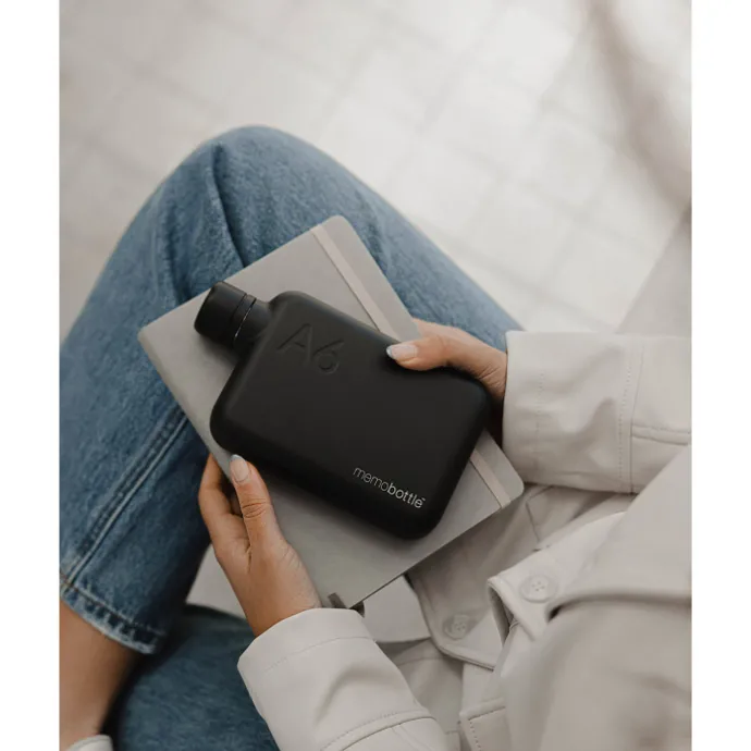 De A6 Memobottle Stainless Steel past perfect in jezak, handtas of als een trainingsmaatje. Gebaseerd op het internationale papierformaat A6 met een elegante vorm, strak design en minimalistisch uiterlijk. Deze chique waterfles, met een inhoud van 500ml, is de perfecte maat om je gezond, gelukkig en gehydrateerd te houden.
