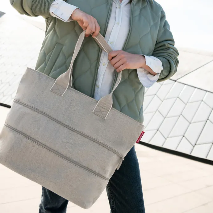 Deze Shopper e1 van het merk Reisenthel uit de shopping serie is een bijzondere tas. De shopper is bijzonder doordat er een rits halverwege de tas is geplaatst, zodat de tas met een gemak een stuk groter kan worden gemaakt. Erg handig als er onverwacht meer spullen meegenomen moeten worden dan vooraf gedacht. Aan de binnenkant van de shopper zit een klein vakje met ritssluiting voor kleine eigendommen.