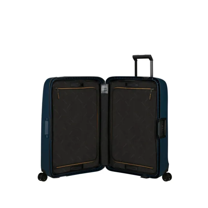 Deze koffer heeft een inhoud van 111 liter en is geschikt voor meer dan 3 weken vakantie. Gemaakt van gerecycled polypropyleen is de koffer niet alleen een duurzamere keuze maar ook nog eens licht in gewicht. De suspensie wielen verminderen geluid en trillingen, waardoor je reiservaring nog comfortabeler wordt. De Samsonite Essens Spinner 75 heeft een geïntegreerd adreslabel en een geïntegreerd TSA-slot om je spullen veilig te houden. De koffer is te personaliseren door de bijgevoegde stickers waardoor de koffer makkelijker terug te vinden is. Bovendien heeft deze koffer een 3-in-1 inpakoplossing, zodat je al je spullen gemakkelijk kunt inpakken en organiseren. Door dit systeem is de binnenkant van de koffer ook goed schoon te maken na je vakantie. Het lichtgewicht van de koffer zorgt ervoor dat je meer spullen kunt meenemen zonder dat je je zorgen hoeft te maken over extra gewicht. Of je nu op zakenreis gaat of een lange vakantie, deze koffer is een must-have voor elke reis. Het biedt voldoende ruimte voor al je spullen en zorgt ervoor dat je reis soepel en comfortabel verloopt.