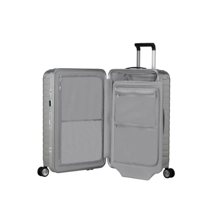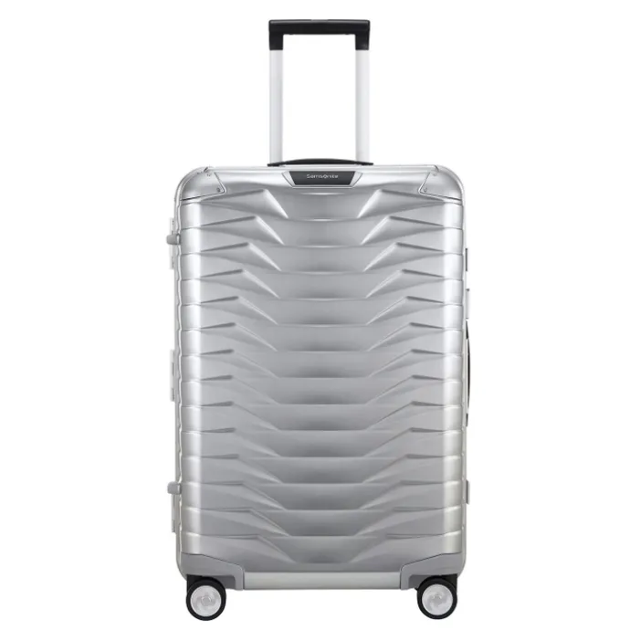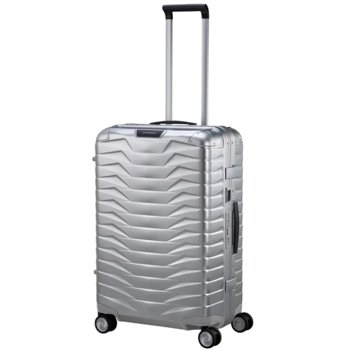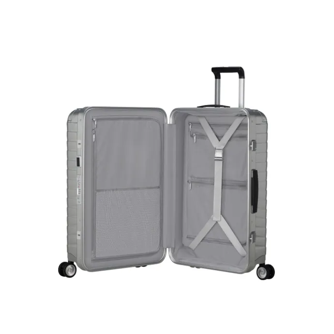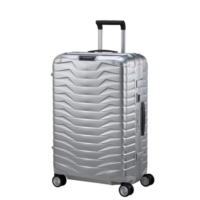 Reis vol vertrouwen met de Samsonite Proxis Alu Spinner 69. Deze exclusieve koffer combineert het herkenbare Proxis-ontwerp met de topkwaliteit van aluminium, volledig ontworpen voor uitmuntend reiscomfort. Aluminium staat bekend om zijn lichte gewicht, stevigheid en luxe uitstraling, wat deze koffer perfect maakt voor de stijlvolle reiziger. Met een inhoud van 71 liter biedt deze koffer voldoende ruimte voor een reis van 1-2 weken. Voorzien van een TSA-slot, zijn je items onderweg goed beschermd. Deze exclusieve koffer kan bovendien worden gepersonaliseerd om het design helemaal af te maken.