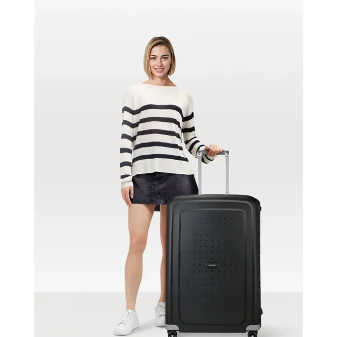 Deze Samsonite S’Cure Spinner 75 is onderdeel van Samsonite’s nieuwste ultra-lichtgewicht polypropyleen collectie Samsonite S’Cure. Dankzij Flowlite (een nieuwe polypropyleenmix) brengt deze S’Cure collectie een revolutionaire verandering teweeg in gewicht. De schaal van deze nieuwe S’Cure koffercollectie heeft de sterkte die van een Samsonite koffer verwacht mag worden en beschikt over de bekende en uiterst veilige driepuntssluiting. Is deze Samsonite koffer niet precies wat je zoekt? Bekijk dan ons uitgebreide aanbod in  of bekijk ons volledige overzicht  van verschillende merken.
