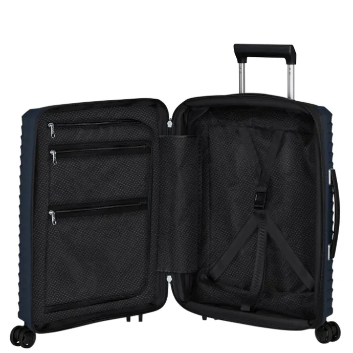 Reizen met een handbagage koffer heeft een aantal grote voordelen ten opzichte van ruimbagage. Sla de wachtrijen op het vliegveld over en ga op reis met de Samsonite Upscape, de ideale handbagage koffer voor jouw volgende reis. Met deze handbagage koffer hoef je niet in te checken op het vliegveld en op de plek van bestemming sta je niet te wachten tot alle ruimbagage koffers van de bagageband rollen. Zit je wel eens zonder stroom tijdens je lange reis? Dit is verleden tijd met deze Samsonite koffer, want deze koffer is voorzien van een USB-aansluiting aan de buitenkant. Zo laad je eenvoudig je telefoon, tablet of laptop op tijdens je reis. Omdat deze Samsonite koffer voorzien is van 4 wielen, is de koffer wendbaar en stabiel. Ten opzichte van koffers met 2 wielen is het minder zwaar om de koffer te vervoeren, omdat deze rechtop kan blijven staan.