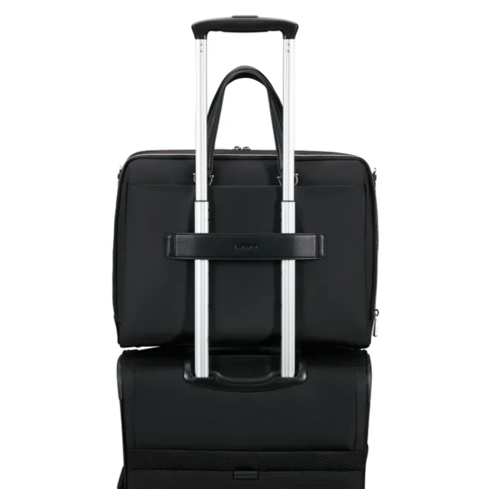 Is de laptoptas van Samsonite uit de Zalia 3.0 serie de tas die aan jouw wensen voldoet? Deze tas heeft een buitenafmeting van H 30 x B 40 x D 10 cm. De tas heeft een laptopvak van 15,6″ en komt met een fabrieksgarantie van 2 jaar. Om zeker te weten of jouw laptop past in de tas, is ons advies om de buitenafmeting van jouw laptop te meten. Is deze kleiner dan de buitenafmeting van de tas? Dan weet je zeker dat het past. Het belangrijkste doel van een laptopvak is het beschermen van je laptop tegen vallen en stoten. Wanneer je vaak je laptop meeneemt, is het aan te bevelen om je laptop niet los in je tas mee te nemen. Je laptop komt zo niet in aanraking met ander spullen in je tas. Niet alleen jouw laptop wordt veilig vervoerd, maar ook je tablet is helemaal veilig opgeborgen in deze tas. Plaats de tablet in het vak en ook deze is beschermd.