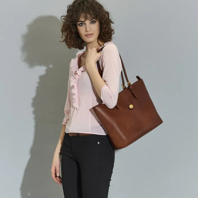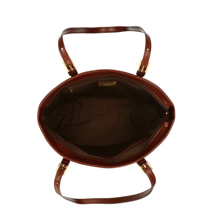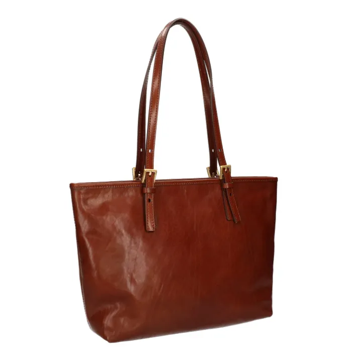 Deze elegante damestas is de Story Donna Shopper van The Bridge. De tas is vervaardigd uit hoogwaardig, soepel leer wat zorgt voor een stijlvolle uitstraling. Het hoofdvak beschikt over een soepele ritssluiting. Hierin kunnen een telefoon, sleutels en andere eigendommen overzichtelijk worden opgeborgen. Twee schouderriemen zijn verstelbaar in lengte waardoor de tas op verschillende lengte in de hand of over de schouder is te dragen. De tas is zorgvuldig afgewerkt en heeft nauwkeurige details: een product van echt vakmanschap!