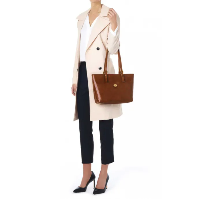 Speciaal voor vrouwen heeft het Italiaanse merk The Bridge de Story Donna lijn ontwikkelt. Deze fantastische collectie bestaat uit handgemaakte tassen en accessoires van hoogwaardig leder. De The Bridge Story Donna Ladies Shopper is een ware verschijning dankzij hetstijlvolle leder en de goudkleurige details. Het hoofdcompartiment met ritssluiting is aan de binnenzijde voorzien van een ritsvak en twee insteekvakken van verschillende formaten. Dankzij de wat langere draaghengsels is de tas op diverse manieren prettig te dragen. Wij zijn officieel The Bridge dealer, je kunt voor de volledige garantie bij ons terecht.
