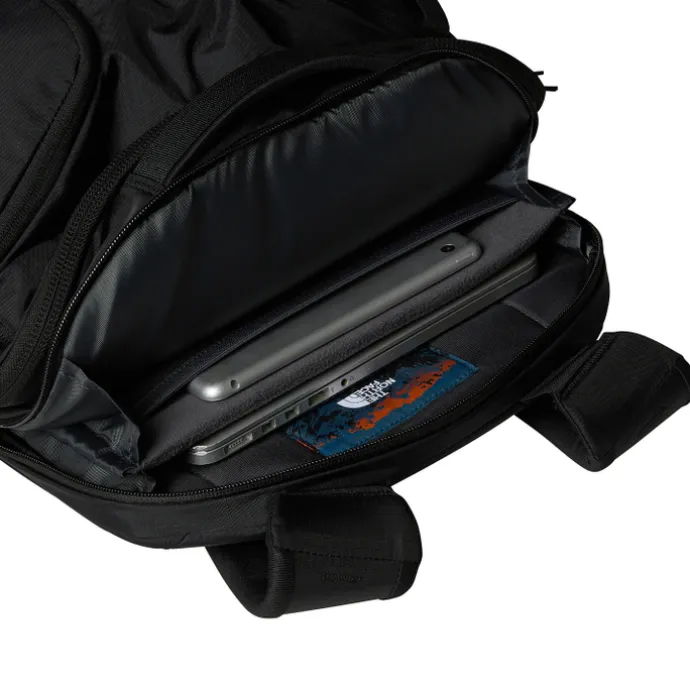 De North Face Surge Backpack is gebouwd voor lange dagen onderweg. Met 31 liter inhoud en een apart vak voor een 16 inch laptop neem je alles overzichtelijk mee, van werkspullen tot sportkleding. Het slimme draagsysteem met gewatteerde schouderbanden, verstelbare borstsluiting en een afneembare heupgordel zorgt voor comfort en stabiliteit, zelfs als de tas helemaal vol zit. Reflecterende details maken je goed zichtbaar in het verkeer en het waterafstotende polyester beschermt je spullen tegen een onverwachte regenbui. Een rugzak die gemaakt is om mee te bewegen, waar de dag je ook brengt.