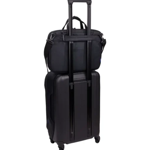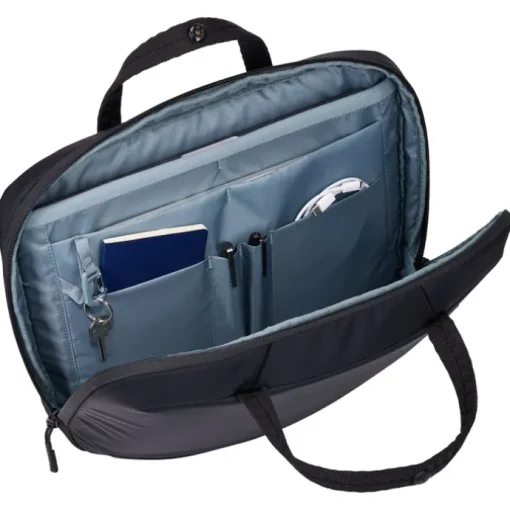 Deze laptop schoudertas van Thule uit de Subterra 2 serie heeft een laptopvak van 14″. Deze tas is geschikt om jouw laptop veilig en beschermd te vervoeren. Heb jij twijfels en wil je zeker weten of jouw laptop ook echt in deze laptoptas past? Meet dan de buitenafmeting van je laptop op. Is deze kleiner dan de buitenafmeting van de tas, dan is de kans dat de laptop past groot. De buitenafmetingen van deze laptop schoudertas zijn H 40 x B 42 x D 11 cm. Deze laptoptas komt met een fabrieksgarantie van 5 jaar. Een laptopvak biedt extra bescherming voor je laptop. Je hoeft je geen zorgen te maken over eventuele beschadigingen tijdens het vervoeren. In deze tas is er niet alleen een vak gemaakt om jouw laptop veilig in op te bergen, er is ook een vak voor je tablet. Dit tabletvak biedt bescherming tegen spullen in jouw tas met scherpe randen en punten, maar zorgt er ook voor dat de tablet goed op z’n plek blijft zitten tijdens de reis.