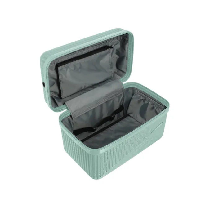 Ruim, sterk en klaar voor actie, de Travelite Bali Beautycase is jouw betrouwbare partner voor elke reis. Met een royale inhoud van 17 liter en een stevige behuizing van ABS biedt deze beautycase alle ruimte én bescherming die je nodig hebt. Of je nu make-up, toiletspullen of reisaccessoires meeneemt, alles blijft veilig opgeborgen achter de ritssluiting. Je draagt ‘m comfortabel met de verstelbare en afneembare schouderriem, of je schuift ‘m dankzij de smart sleeve moeiteloos over je trolley. Een praktische allrounder met een strak design!