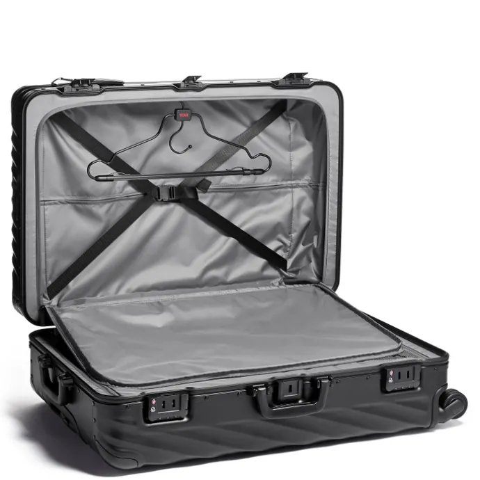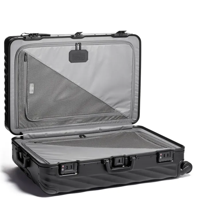 Deze 19 Degree Aluminium Extended Trip Packing Case van Tumi is een ontzettend duurzame koffer. Deze Tumi koffer heeft een prachtig ontwerp en goed gevormde hoeken en is vervaardigd van hoogwaardig aluminium. Dit garandeerd de duurzaamheid en stevigheid. Deze grote koffer is ideaal voor langere bedrijfs- of vakantiereizen, of om samen te reizen.Dankzij de twee TSA-cijfersloten kan zorgeloos naar de VS worden gereisd. De telescopische trekstang, vier dubbele wielen en de handvatten zorgen voor optimaal comfort tijdens de reis. Het interieur is voorzien van twee compartimenten waarin kleding en andere spullen opgeborgen kunnen worden. Daarnaast zijn er een hanger voor bijvoorbeeld een pak, inpakriemen en drie ritsvakken. Kortom: meer dan voldoende ruimte om alle spullen mee te kunnen nemen.