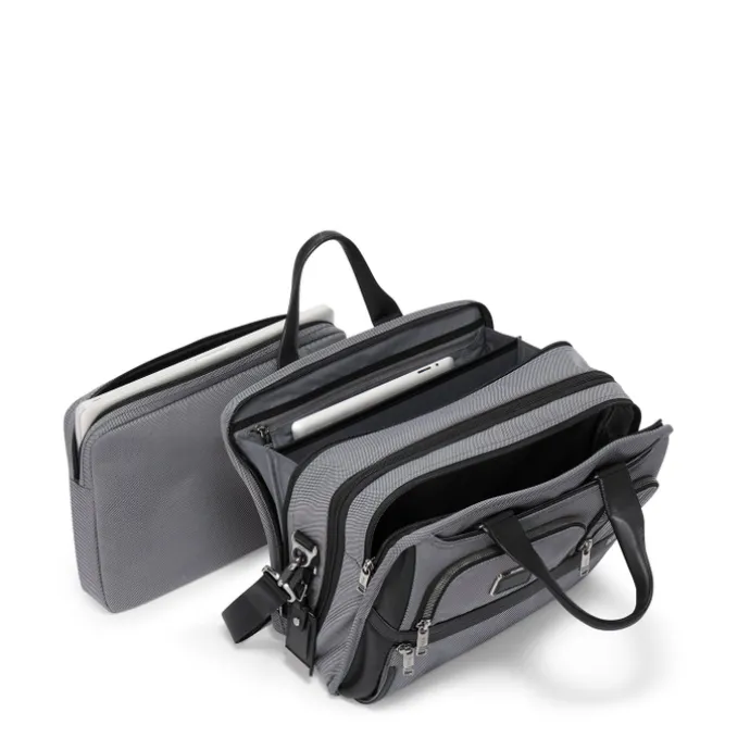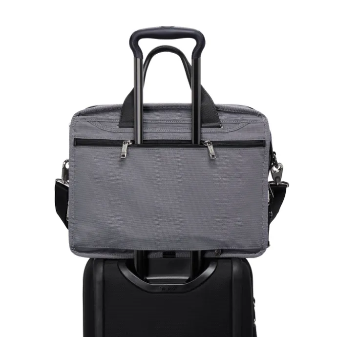 Is de laptoptas van Tumi uit de Alpha serie de tas die aan jouw wensen voldoet? Deze tas heeft een buitenafmeting van H 32 x B 40.5 x D 14 cm. De tas heeft een laptopvak van 15″ en komt met een fabrieksgarantie van 5 jaar. Om zeker te weten of jouw laptop past in de tas, is ons advies om de buitenafmeting van jouw laptop te meten. Is deze kleiner dan de buitenafmeting van de tas? Dan weet je zeker dat het past. Het gevoerde laptopvak zorgt voor extra bescherming zodat jouw laptop veiling kan worden meegenomen. Jouw kostbare laptop kan zo niet beschadigd worden door andere items in je tas. Deze tas heeft ook een tabletvak. Net als bij een laptopvak heeft een tabletvak als voordeel dat je tablet niet in aanraking komt met scherpe objecten in je tas, en je tablet er dus veel langer als nieuw uit blijft zien. Een telefoonvak is ideaal voor je als je vaak je telefoon kwijt bent in je tas en vaak eindeloos loopt te zoeken. Als het je lukt om je telefoon altijd op dezelfde plaats te bewaren, dan is dit verleden tijd. Daarnaast verminderd het gebruik van een telefoonvak ook nog eens de kans op beschadigingen.