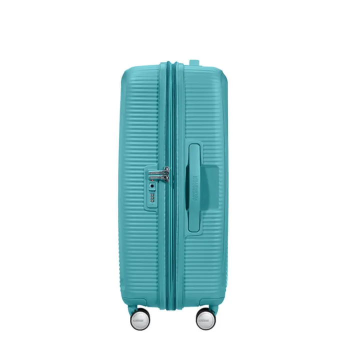 De American Tourister Soundbox Spinner 67 Expandable is fantastisch. Deze middenmaatkoffer ziet er stijlvol uit en dankzij het polypropyleen is de koffer licht en ultrastevig. Bagage is overzichtelijk en gescheiden van elkaar op te bergen dankzij het ruime hoofdcompartiment met gekruiste inpakriemen, een afsluitbaar ritscompartiment en twee ritsvakken. Eigenlijk geen plaats meer voor de gekochte souvenirs? De koffer is door middel van een rits uitbreidbaar tot maar liefst 81 liter inhoud. Dankzij het TSA-cijferslot is de koffer beschermd tegen openbreken en hierdoor kan hij met een gerust hart achtergelaten worden op het vliegveld. De vier dubbele, soepele wielen en dubbele trekstang zorgen voor een maximaal gebruiksgemak.