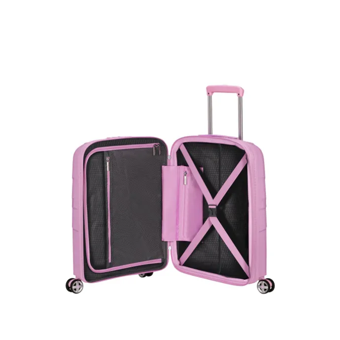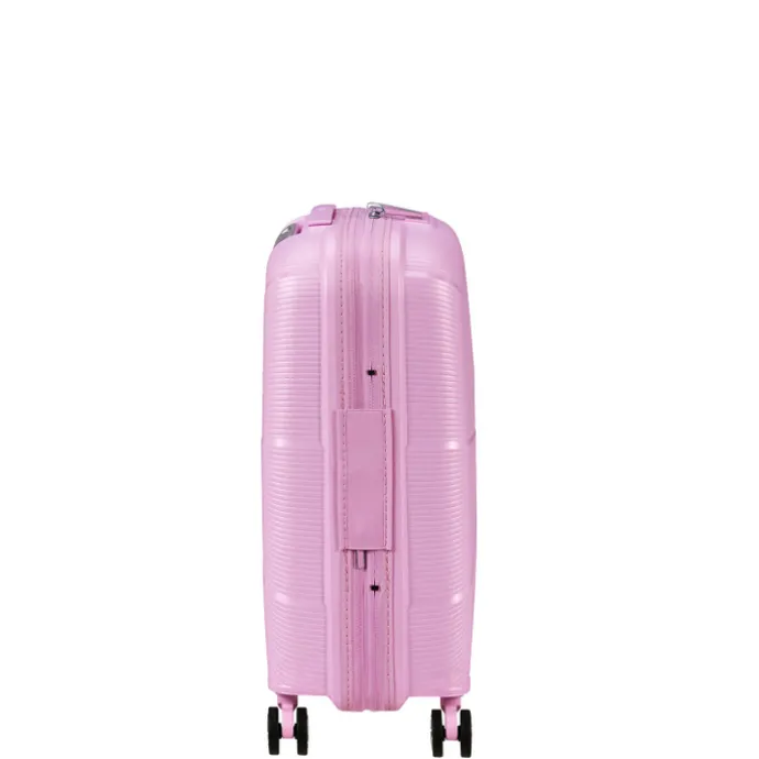 Voor je vakantie, cityrip of zakenreis op zoek naar een koffer die geschikt is om mee te nemen als handbagage? Deze American Tourister Starvibe harde koffer is geschikt om mee te nemen als handbagage aan boord van het vliegtuig. Met een handbagage koffer bespaar je tijd omdat je geen ruimbagage hoeft in te checken en bij aankomst op bestemming ook niet hoeft te wachten tot je koffer van de bagageband afrolt. Daarnaast scheelt het ook nog eens in de portemonnee, omdat ruimbagage vaak extra kosten met zich meebrengt. Tijdwinst, geen gezeul met koffers en ook nog eens voordelig dus. Ons advies is dan ook altijd om te kiezen voor een handbagage koffer, wanneer dit uiteraard mogelijk is wat betreft de hoeveelheid bagage die je wilt meenemen. Deze American Tourister koffer is voorzien van 4 wielen en wordt daarom ook wel een spinner koffer genoemd. Ten opzichte van een koffer met 2 wielen is een spinner koffer wendbaarder en kun je deze rechtop laten staan tijdens het vervoeren. Deze American Tourister koffer heeft een inhoud van 41 liter. Dit is voldoende ruimte voor een reis van 2-3 dagen.