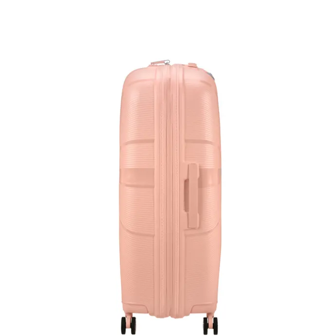 Ben je op zoek naar een koffer die voldoende ruimte biedt voor al jouw bagage? Dan is deze American Tourister harde koffer iets voor jou. Deze koffer is geschikt als ruimbagage koffer. Dit betekent dat je deze koffer niet zelf mee mag nemen aan boord als handbagage, maar ingecheckt wordt als ruimbagage op het vliegveld. Op deze American Tourister koffer krijg je 3 jaar garantie en de koffer is gemaakt van recyclex. Omdat deze American Tourister koffer voorzien is van 4 wielen, is de koffer wendbaar en stabiel. Ten opzichte van koffers met 2 wielen is het minder zwaar om de koffer te vervoeren, omdat deze rechtop kan blijven staan.