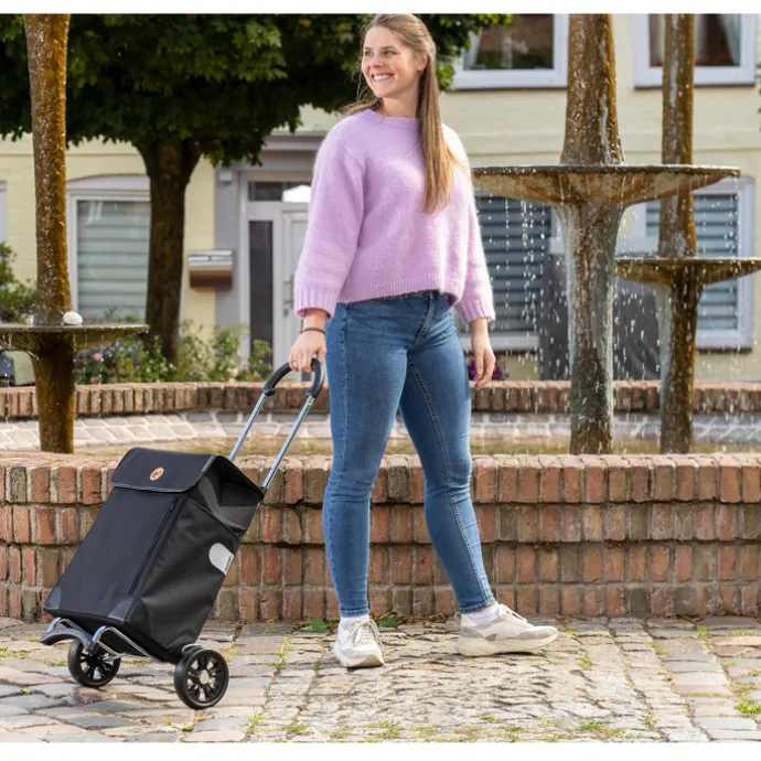 Op zoek naar een boodschappentrolley? Met deze Andersen boodschappentrolley heb je 40 liter aan ruimte om vol te stoppen met boodschappen of andere aankopen. Maak winkelen een stuk makkelijker voor jezelf met deze boodschappentrolley. Deze trolley kun je makkelijk met je mee trekken door de soepele wieltjes en de trekstang, hierdoor hoef je niet zelf je zware aankopen te dragen. Ook is de tas los te koppelen van het onderstel. Deze Andersen boodschappentrolley uit de Weda serie is gemaakt van sterk tweed. De fabrieksgarantie op deze Andersen boodschappentrolley is 3 jaar.