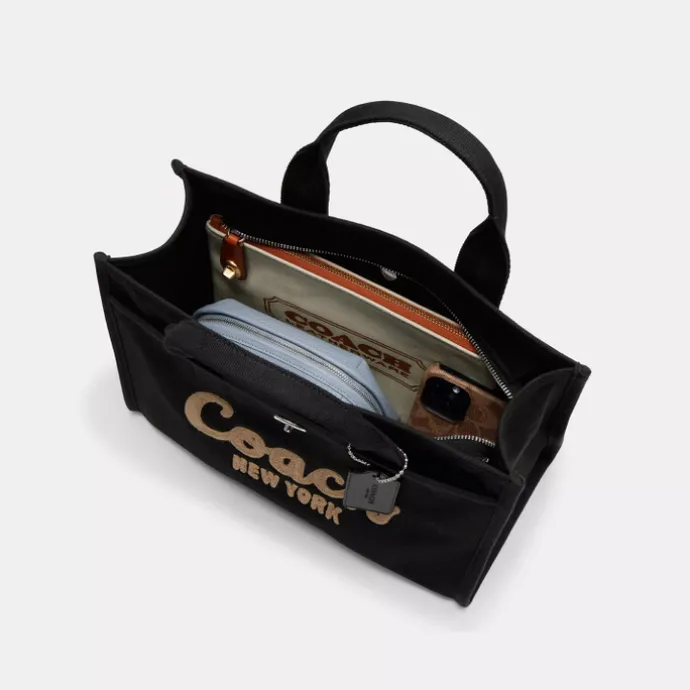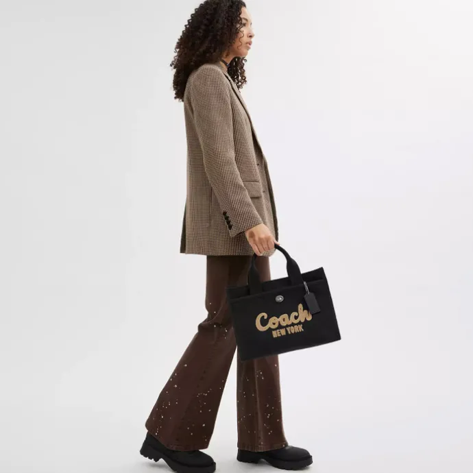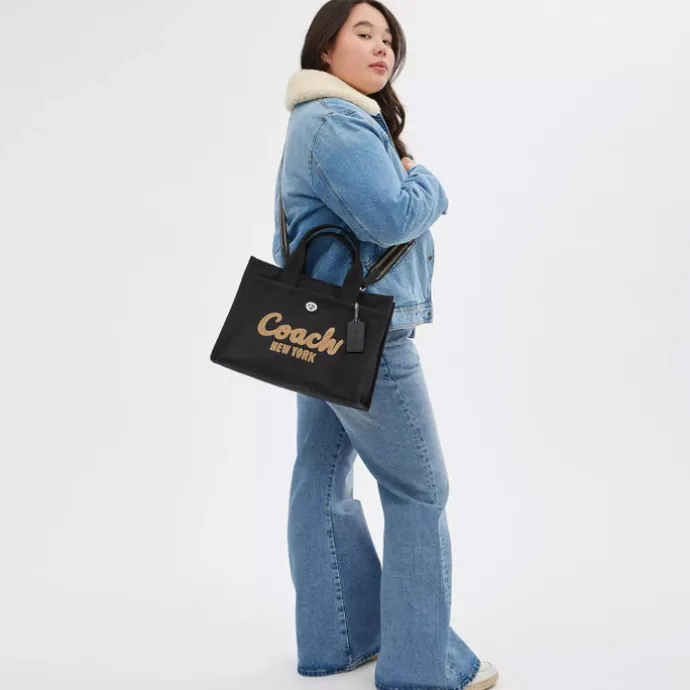 De Coach Cargo Tote is een ruime en stijlvolle tas, voorzien van een geborduurd Coach-logo. Met een inhoud van 12.5 liter biedt de tas genoeg ruimte voor een tablet of een kleine laptop van maximaal 13” inch. De Cargo Tote heeft twee handige buitenvakken met draaisluiting, terwijl het hoofdvak veilig sluit met een rits. Dankzij de afneembare schouderriem kun je de tas zowel als schoudertas als crossbody dragen, afhankelijk van wat jij het prettigst vindt.