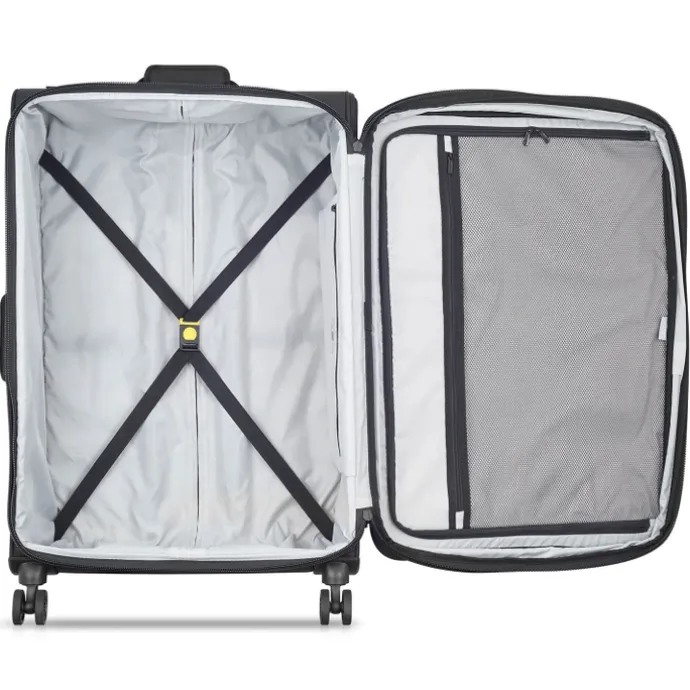 Ga je lang op reis en wil je geen concessies doen qua bagage? De Delsey Maubert 2.0 Trolley 79 helpt je zonder moeite op weg. Gemaakt van waterafstotend polyester en met een uitbreidbare inhoud tot 118 liter is dit een betrouwbare keuze voor vakanties van meer dan 3 weken. De pakriemen in het hoofdvak zorgen ervoor dat alles netjes blijft zitten, terwijl je in de twee ruime voorvakken snel bij je spullen kunt. Dankzij de vier dubbele wielen, een uitschuifbare trekstang en het TSA-slot reis je comfortabel én zorgeloos.