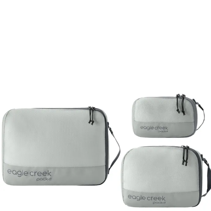De Eagle Creek Pack-It Reveal Cube Set, bestaande uit drie verschillende cubes, maakt het inpakken van je bagage een stuk eenvoudiger. Deze set zorgt niet alleen voor meer overzicht tijdens het inpakken, maar bespaart ook ruimte. Het mesh materiaal maakt het makkelijk om van buitenaf te zien wat er in de cube zit, waardoor je de cube niet eerst hoeft te openen.