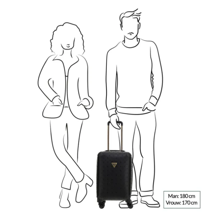 Deze Guess koffer met handige sorteervakken uit de Wilder Travel serie is een handbagage koffer. Voor een korte vakantie, citytrip of zakenreis is een handbagage koffer aan te bevelen, omdat dit je totale reistijd verkort. Je hoeft niet in de rij aan te sluiten om je ruimbagage in te checken en op de luchthaven van bestemming hoef je niet op te wachten bij de bagageband om je koffer weer op te pikken. Wordt deze zachte koffer van Guess jouw nieuwe aankoop? Omdat deze Guess koffer voorzien is van 4 wielen, is de koffer wendbaar en stabiel. Ten opzichte van koffers met 2 wielen is het minder zwaar om de koffer te vervoeren, omdat deze rechtop kan blijven staan. Deze Guess koffer heeft een inhoud van 32 liter. Dit is voldoende ruimte voor een reis van 2-3 dagen.