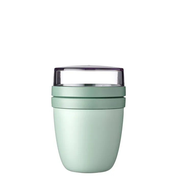 Met de Mepal Ellipse Lunch Pot kun jij overal je tussendoortje mee naartoe nemen. Door de 2 lekvrije compartimenten kun jij je ingrediënten gescheiden van elkaar bewaren. Het bovenste compartiment heeft een inhoud van 200ml, dit betekent dat er ongeveer 75 gram muesli of fruit in past. Het onderste compartiment heeft een inhoud van 500ml. De sterke lunch pot kan niet alleen tegen een stootje, maar mag ook in de vriezer, magnetron en vaatwasser.
