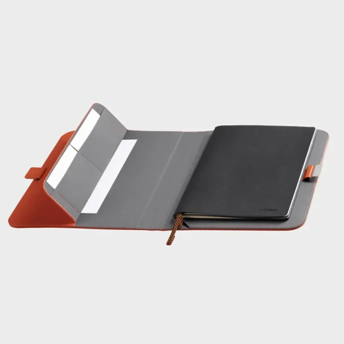 Ga er stijlvol op uit met deze handige Compendium notitieblokhoes van Orbtikey. Je notities en aantekeningen heb je met deze handige hoes altijd bij je en neem je ook gemakkelijk mee naar je volgende meeting. Gemakkelijk te openen en sluiten met de elastische sluiting. Er is extra plek om papieren of een kleine tablet op te bergen en met de extra steekvakken zijn je visite kaartjes of pasjes veilig opgeborgen. Naast het notitieblok is er plek voor je pen, waardoor je altijd meteen je ideeën kunt uitwerken. De schrijfmap wordt geleverd met notitieblok. Gemaakt van stijlvol en duurzaam leer.