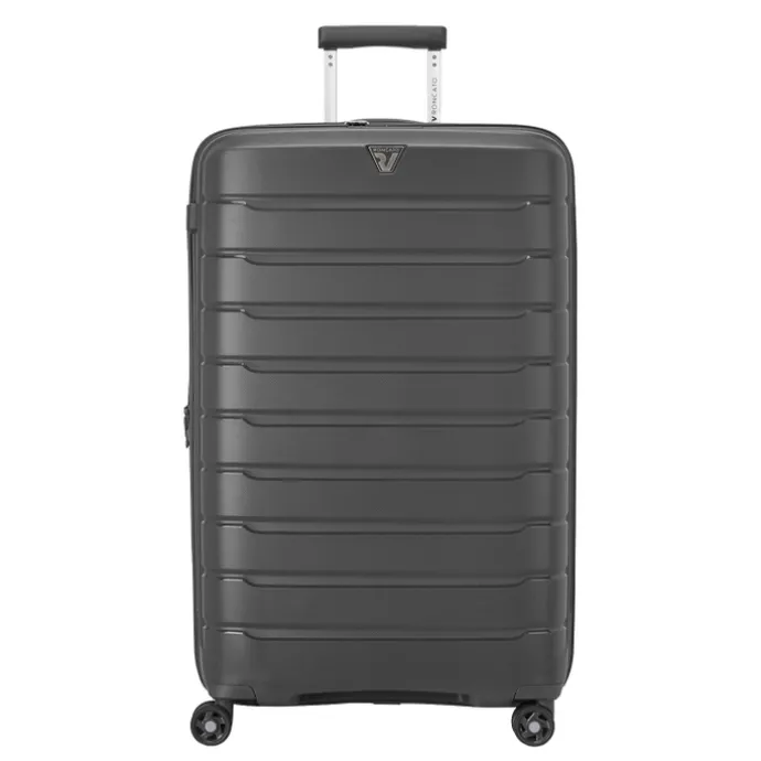 Is deze Roncato B-flying jouw nieuwe koffer? Deze koffer is groot genoeg om al jouw bagage in op te bergen. Op de luchthaven check je de koffer veilig in zodat deze op je eindbestemming weer netjes van de bagageband af rolt. Op deze harde koffer van Roncato wordt 5 jaar garantie gegeven. Het materiaal van de koffer is polypropyleen en in de koffer kun je 129 liter kwijt. Deze Roncato koffer is voorzien van 4 wielen en wordt daarom ook wel een spinner koffer genoemd. Ten opzichte van een koffer met 2 wielen is een spinner koffer wendbaarder en kun je deze rechtop laten staan tijdens het vervoeren. Deze Roncato koffer heeft een inhoud van 129 liter. Dit is voldoende ruimte voor een reis van meer dan drie weken. Ook wanneer je graag souvenirs of aankopen meeneemt vanuit het buitenland kan een grote koffer handig zijn.