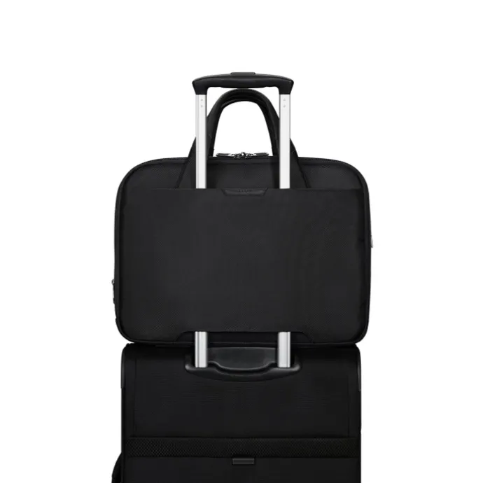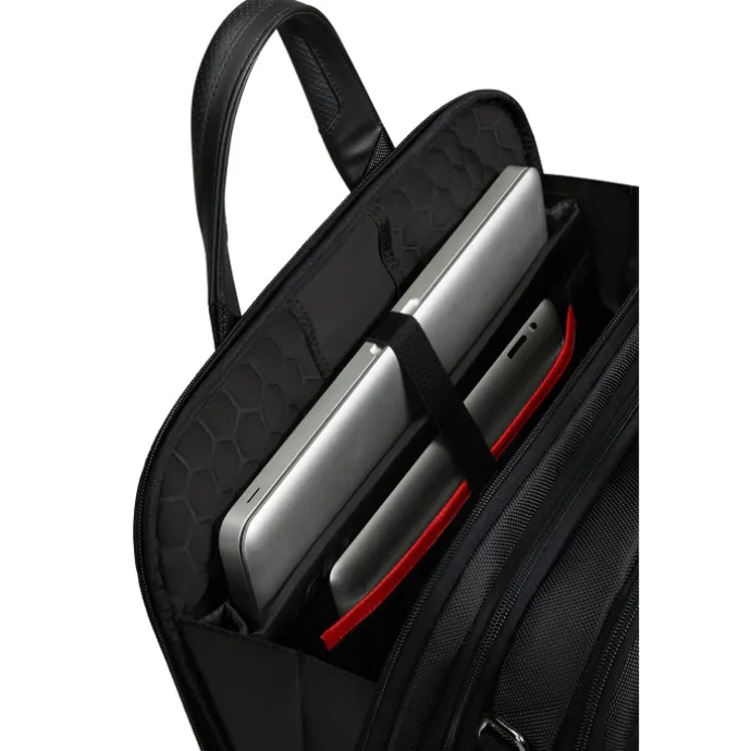 Is deze tas met laptopvak uit de Pro-DLX 6 van het merk Samsonite iets voor jou? Deze Samsonite tas is voorzien van een geïntegreerd laptopvak, geschikt voor een laptop van maximaal 15,6″. Wil je 100% zeker weten dat je laptop ook echt past? Meet dan de buitenafmeting van je laptop even op. Deze dient kleiner te zijn dan de buitenafmetingen van deze tas (H 30.5 x B 42 x D 21). Op deze tas wordt 2 jaar garantie gegeven. Het gevoerde laptopvak zorgt voor extra bescherming zodat jouw laptop veiling kan worden meegenomen. Jouw kostbare laptop kan zo niet beschadigd worden door andere items in je tas. Naast een laptopvak heeft deze tas met laptopvak ook nog eens een tabletvak. Niet alleen bescherming voor je laptop, maar dus ook nog de mogelijkheid om beschermd een tablet mee te nemen. Bewaar jouw telefoon altijd in het telefoonvak en raak hem niet meer kwijt. Het telefoonvak beschermd je telefoon tegen items in je tas.