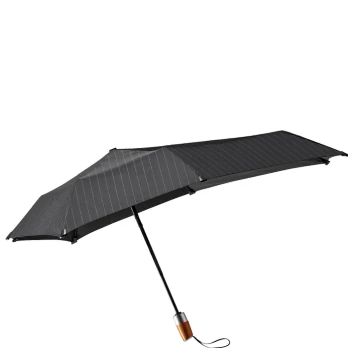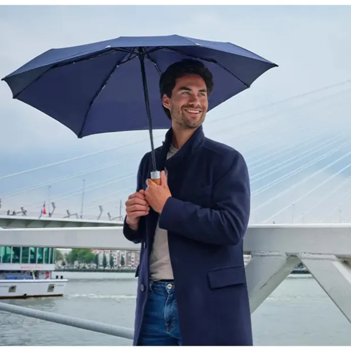 De Automatic Deluxe van het merk Senz is ontworpen met het oog op kwaliteit: van het stormbestendige frame tot het leren handvat. De aerodynamische vorm laat de paraplu zweven op de wind en de unieke vorm zorgt voor extra draagcomfort. Daarnaast is het handvat afgewerkt met zacht leer wat prettig aanvoelt en daarnaast voor een luxeuze finishing touch zorgt. De afgeronde hoeken op de punten van het doek beschermen de ogen van omstanders. De paraplu is eenvoudig in de tas op te bergen dankzij het sneldrogende doek: schud in één beweging de druppels eraf.
