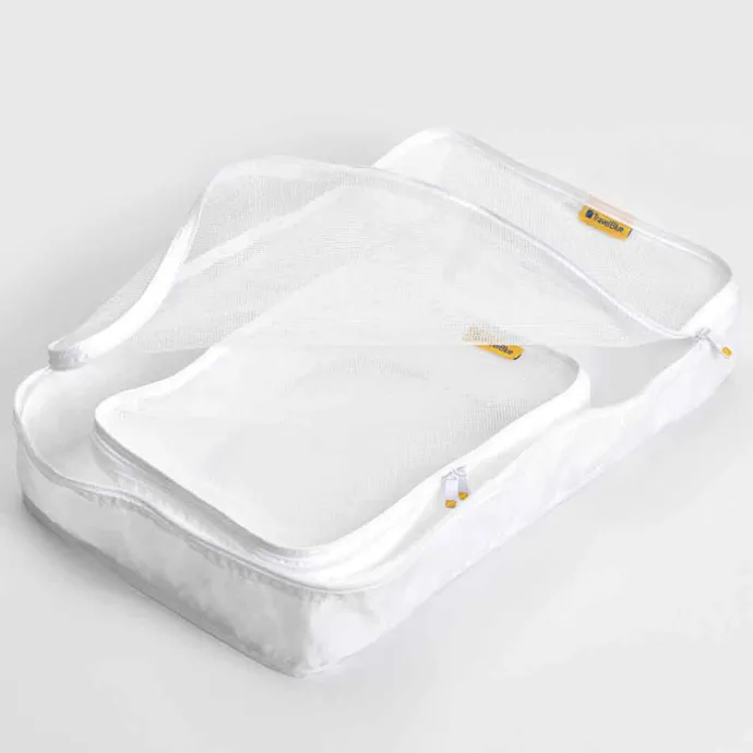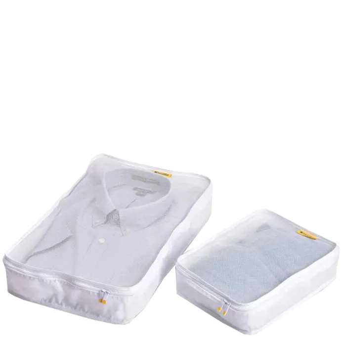 Met deze Clothes Organiser van TravelBlue kun je jij kleren netjes en overzichtelijk opbergen in je koffer of tas. Deze set wordt geleverd met twee cubes. Een grote cube voor shirts, truien en jurken en een kleine cube voor sokken en ondergoed. Je hoeft met deze Clothes Organiser niet je hele koffer of tas op de kop te gooien om je kleren te pakken.