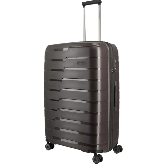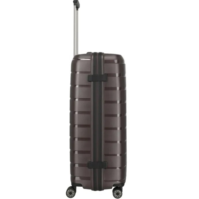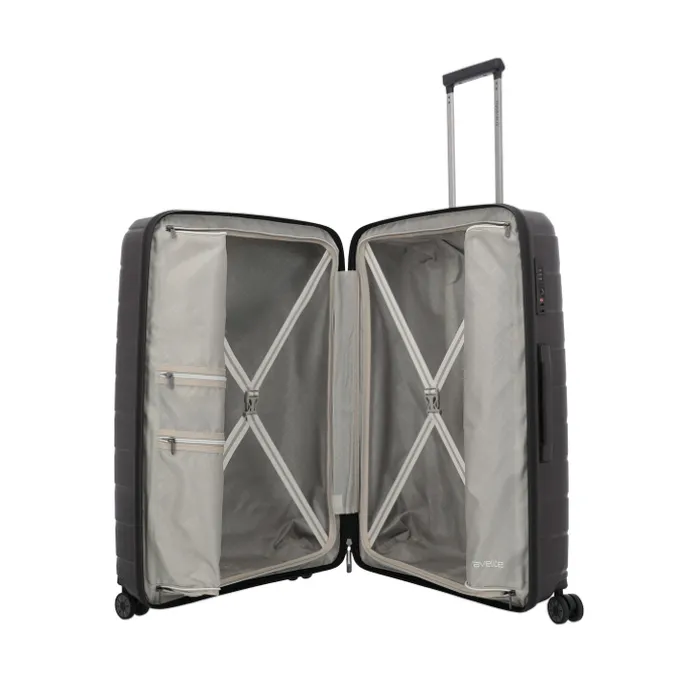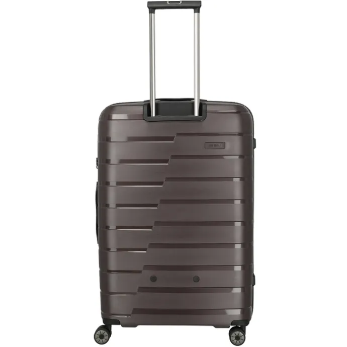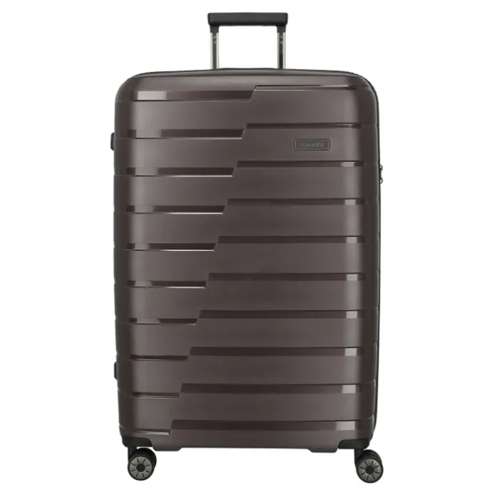 De Air Base 4 Wiel Trolley L is een stijlvolle, moderne koffer en is vervaardigd uit sterk polypropyleen. De koffer van het merk Travelite is voorzien van een uniek en glanzend design, vier wielen, TSA-slot en telescopische trekstang. Zo ga je altijd in stijl en comfortabel op reis! Het interieur van de koffer is uitmate praktisch en is ingericht met een ritscompartiment en elastische pakriemen. De koffer biedt genoeg ruimte voor een lange vakantie van ongeveer drie weken.