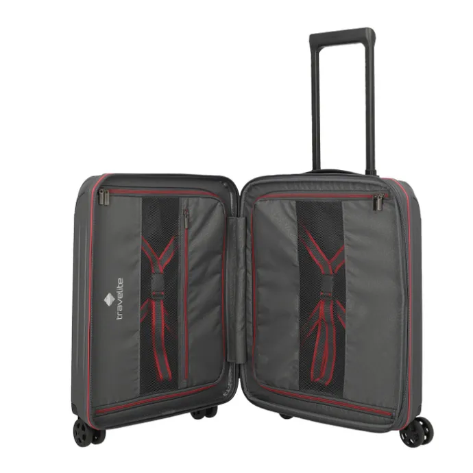 Op stedentrip met alleen handbagage of een paar dagen weg met het vliegtuig? De Travelite Dynamix Cabin Trolley is er klaar voor. Met een inhoud van 43 liter en de mogelijkheid om uit te breiden met nog eens 5 liter, heb je genoeg ruimte voor kleding, toiletspullen en misschien zelfs een extra paar schoenen. Perfect voor wie licht wil reizen, maar toch niets wil missen. De koffer is gemaakt van stevig en krasbestendig ABS, waardoor hij tegen een stootje kan en je bagage goed beschermd blijft, ook als hij in een overvolle bagagebak belandt. De harde buitenkant houdt je spullen veilig, terwijl je binnenin met pakriemen en een interne verdeler alles overzichtelijk inpakt. Dankzij vier wielen en een verstelbare trekstang rol je er soepel mee door elke terminal. En met het TSA-slot ga je zorgeloos op reis, ook richting de VS.