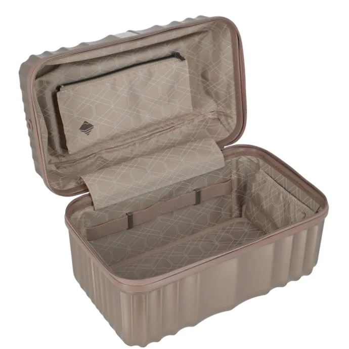 Veel ruimte, stevig design en lekker handig. De Travelite Paros Beauty Case is er voor reizigers die overzicht en comfort willen. Met 18 liter inhoud past er verrassend veel in deze compacte beautycase van sterk ABS-materiaal. Je verzorgingsproducten, make-up of reisaccessoires berg je veilig op in het hoofdvak met ritssluiting, terwijl een intern ritsvak zorgt voor extra structuur. Dankzij de afneembare schouderriem draag je 鈥榤 zoals jij wilt, en de smart sleeve maakt 鈥榤 perfect voor onderweg: schuif 鈥榤 zo over je trolley en je bent good to go.