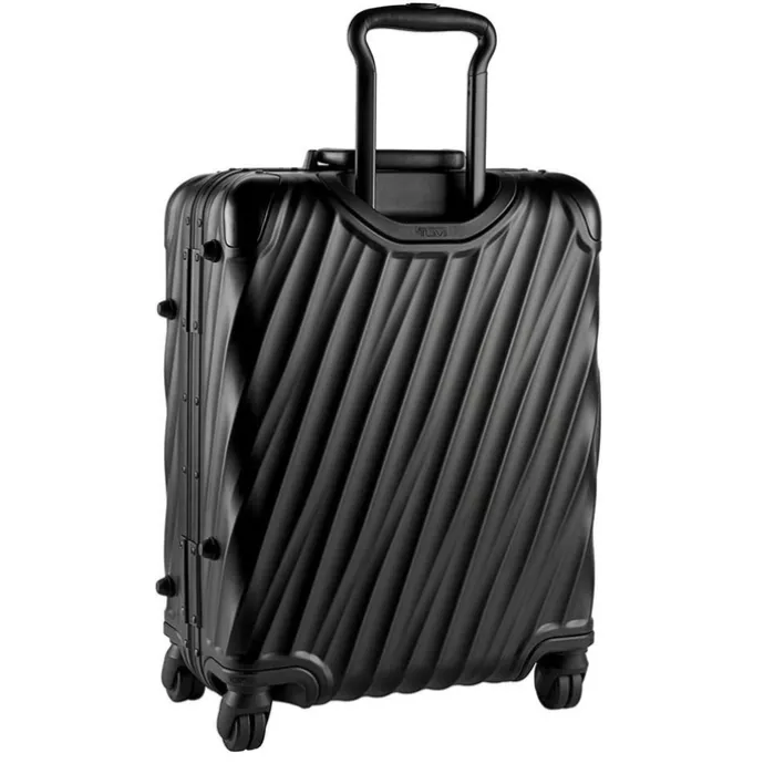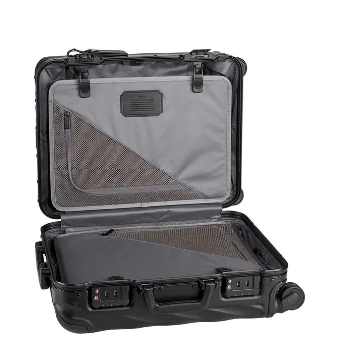 De 19 Degree Aluminium Continental Carry-On van Tumi is een zeer stijlvolle handbagagekoffer. Het hoofdcompartiment is afsluitbaar door middel van een rits en beschikt over inpakriemen en een ritsvak, zodat bagage geordend is op te bergen. Daarnaast beschikt de koffer over een tweede compartiment met inpakriemen, dat afsluitbaar is door middel van een tussenschot. De koffer is voorzien van een beugel voor een hanger, zodat kleding zo veel mogelijk kreukelvrij ingepakt kan worden. Dankzij de twee TSA-cijfersloten kan zorgeloos naar de VS worden gereisd. De telescopische trekstang, vier dubbele wielen en de handvatten zorgen voor optimaal comfort tijdens de reis. Â