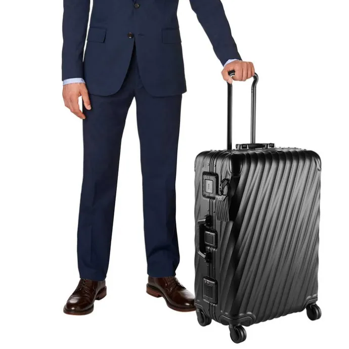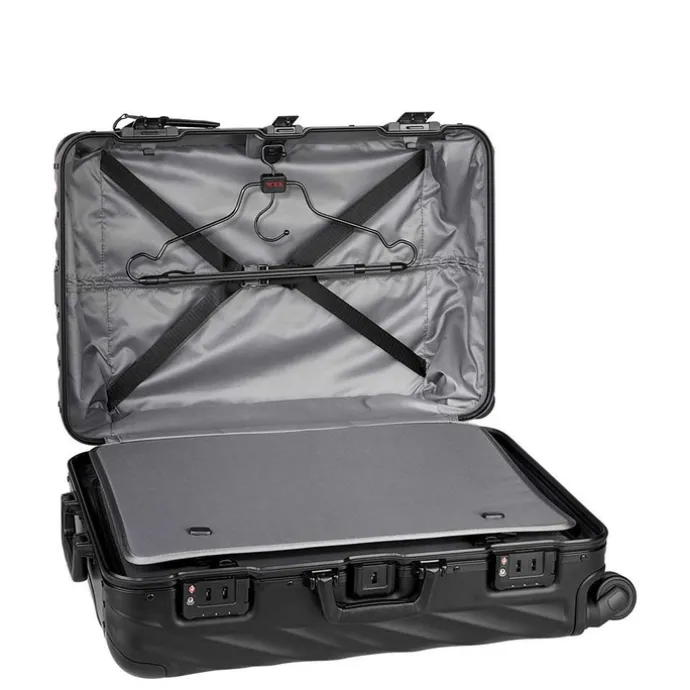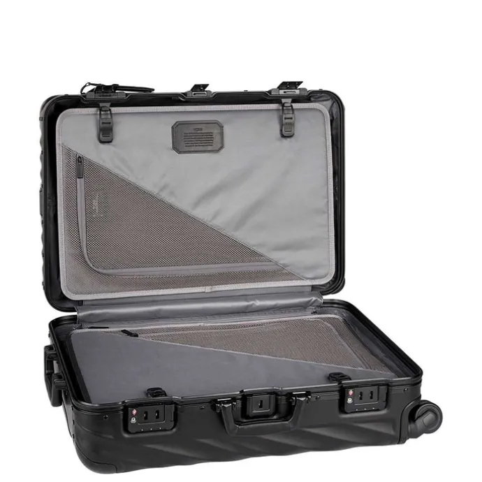 De Tumi 19 Degree Aluminium Short Trip Packing Case is een zeer praktische koffer met een stijlvolle uitstraling. Met een inhoud van 55 liter is deze middengrote koffer geschikt voor ongeveer vijftien kilo bagage. Het hoofdcompartiment is afsluitbaar door middel van een rits en beschikt over inpakriemen en een ritsvak, zodat bagage geordend is op te bergen. Daarnaast beschikt de koffer over een tweede compartiment met inpakriemen, dat afsluitbaar is door middel van een tussenschot. De koffer is voorzien van een beugel voor een hanger, zodat kleding zo veel mogelijk kreukelvrij ingepakt kan worden. Dankzij de twee TSA-cijfersloten is de koffer beter beschermd tegen opgenbreken en kan er zorgeloos naar de VS worden gereisd. De telescopische trekstang, vier dubbele wielen en de handvatten zorgen voor optimaal comfort tijdens de reis. Â