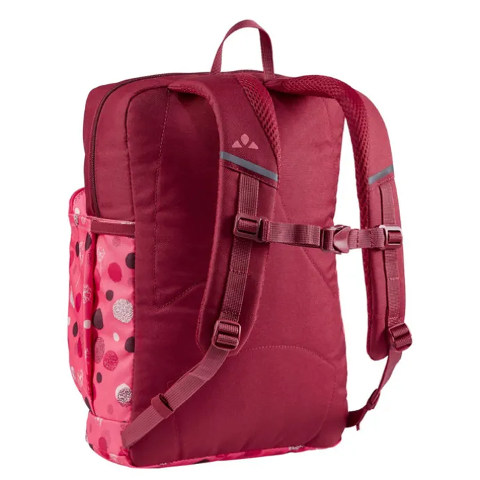 De Vaude Minnie 10 Kinderrugzak van Vaude is voor de jongste avonturiers. De rugzak beschikt over een inhoud van tien liter en hierdoor kan speelgoed, een broodtrommel en extra kleding met gemak worden ingepakt. Wat kleinere eigendommen kunnen worden opgeborgen in het voorvak met rits, dat tevens is voorzien van een naamlabel. Daarnaast beschikt deze rugzak over twee gaasvakken, zodat drinkbekers bij de hand gehouden kunnen worden. Dankzij de reflecterende details is de rugzak ook in het donker goed zichtbaar. De verstelbare borstband en de gewatteerde schouderbanden zorgen voor een maximaal draagcomfort.
